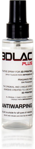 3DLac is the first solution created especially for 3D printing. Especially for 3D printers that have a ‘Heated Bed’ although it is also valid for 3D printers with a cold base. The function of 3DLac is to hold the first layer of plastic so that it does not move at the beginning of the printing, avoiding unwanted failures at the beginning of the 3D printing process.