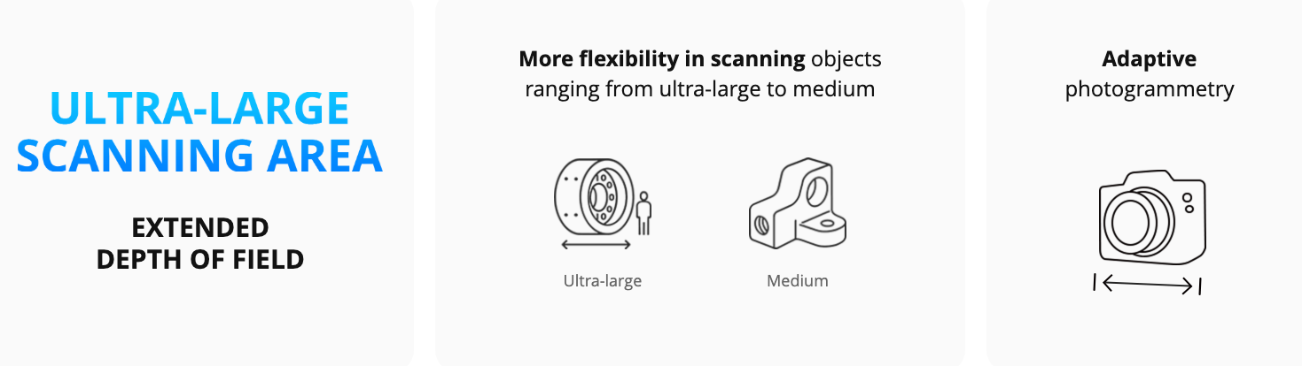 With a large depth of field ranging from 0.3-2.5m, KSCAN-X ensures precise measurements for everything from medium to ultra-large parts with exceptional quality. Its flexible working distance makes scanning various-sized parts easier and more efficient.