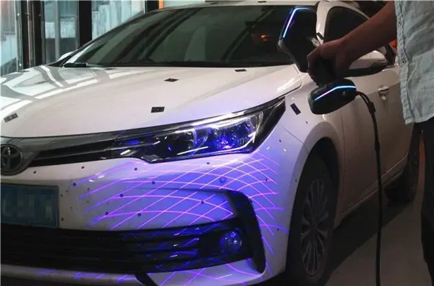 The 11 crossed blue lasers greatly increase the measurement rate to 1,300,000 measurements/s. And the single blue laser line can rapidly obtain 3D data of deep hole and inaccessible positions of complex objects.