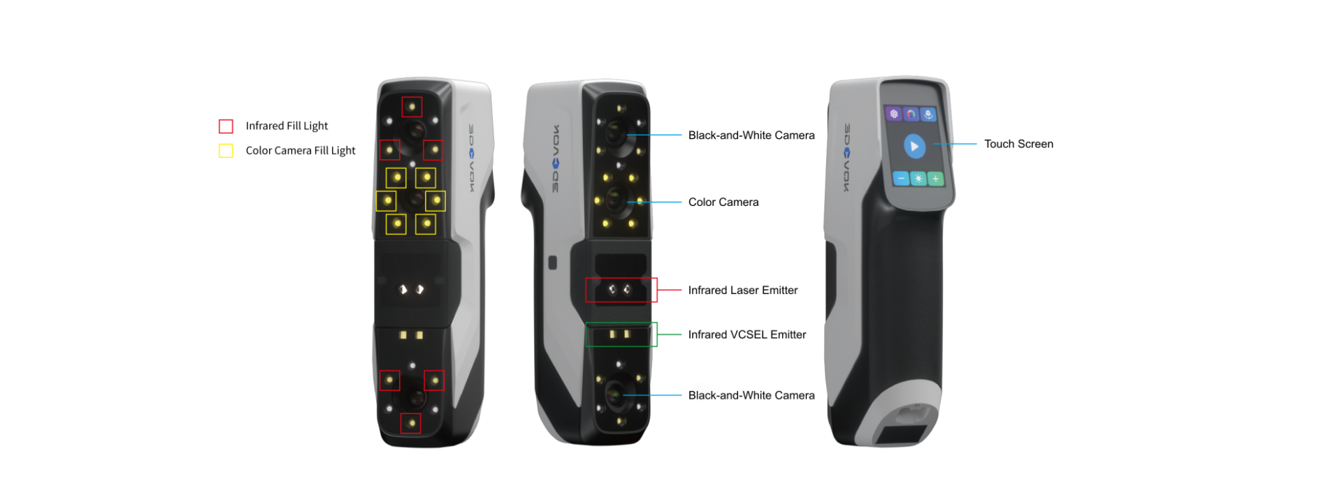 El láser de doble modo (láser infrarrojo y mancha de speckle infrarrojo) permite la digitalización en 3D sin marcador, haciendo que la adquisición de datos 3D sea más eficiente y conveniente.
